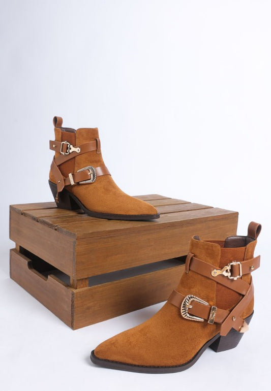 Raveta Microfiber Buckle Strap Western Boots