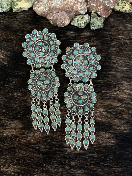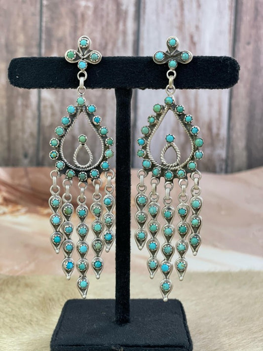 Zuni Sterling Silver & Turquoise Dangle Earrings