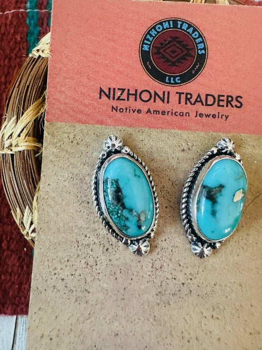 Handmade Sterling Silver Kingman Turquoise Post Ea
