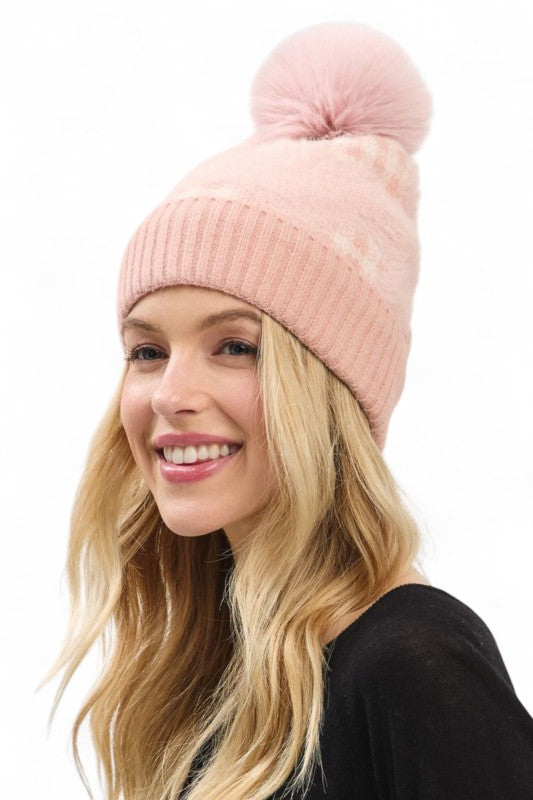 Leopard Fur Pom Beanie