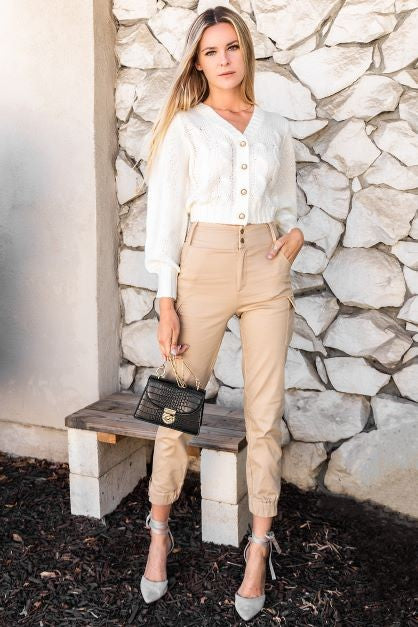 Sage Beige Cream Solid Button Up Sweater Cardigan