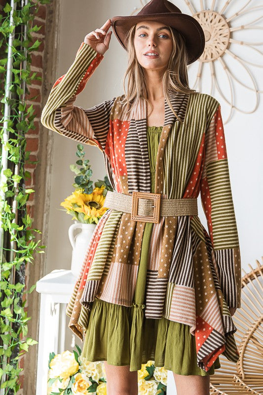 Long Gray Knit Dual Pocket Hooded Cardigan