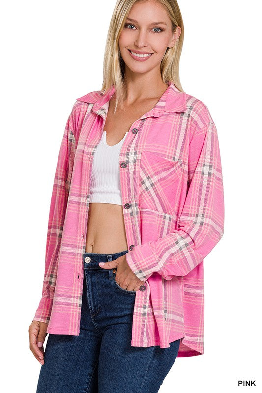 Checkered Print Hooded Patchwork Loose Fit Shacket