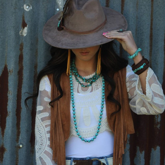 Boho Western Boot Bling Charm w/Leather Fringe