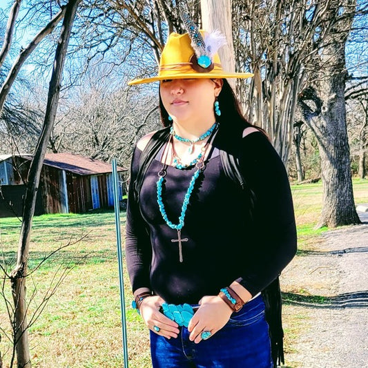 White Turqu Squash Blossom Necklace w Tassel