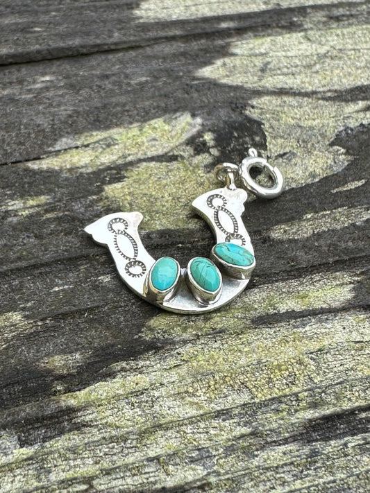 Sterling Silver and 3 Stone Turquoise Horse Shoe C