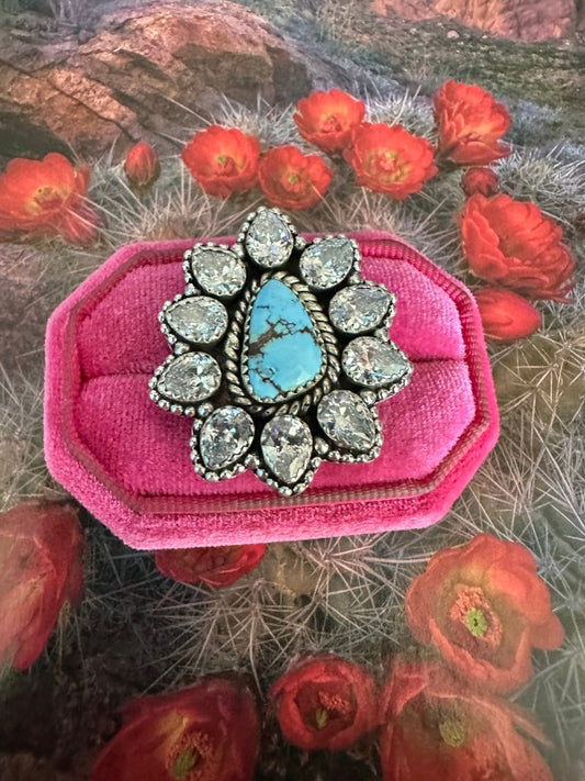 Beautiful Handmade Golden Hills Turquoise , CZ And