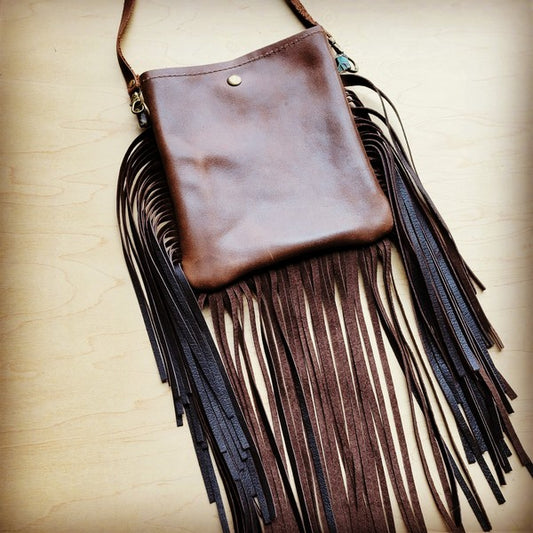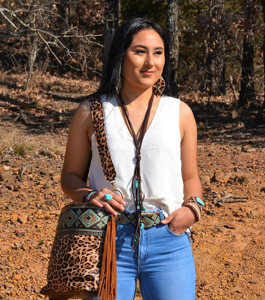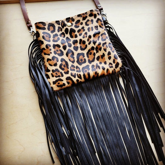 Small Crossbody Handbag w/ Leopard Hide & Fringe
