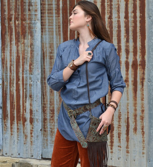 Small Crossbody Handbag w/ Cowboy Tooled Leather