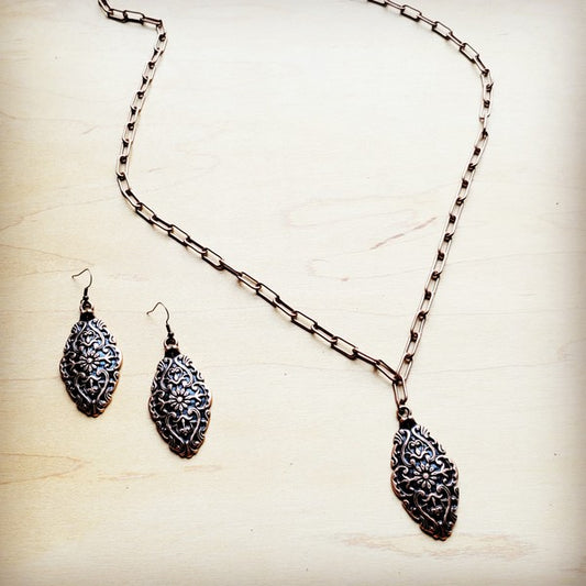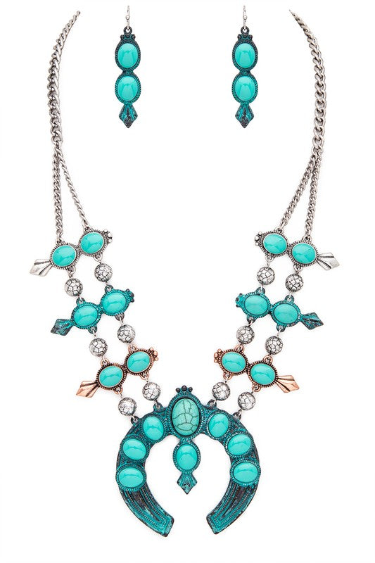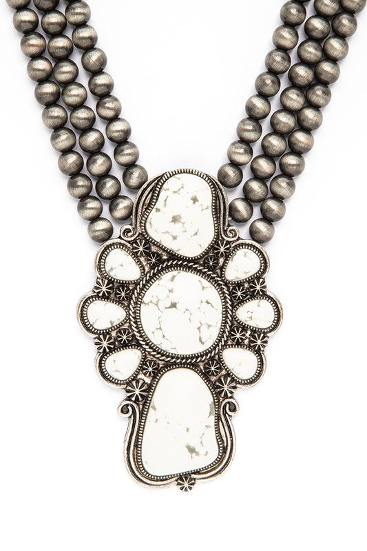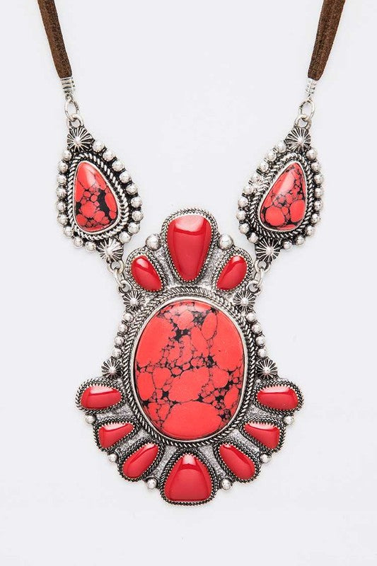Stone Teardrop Pendant Rope Chain Western Necklace