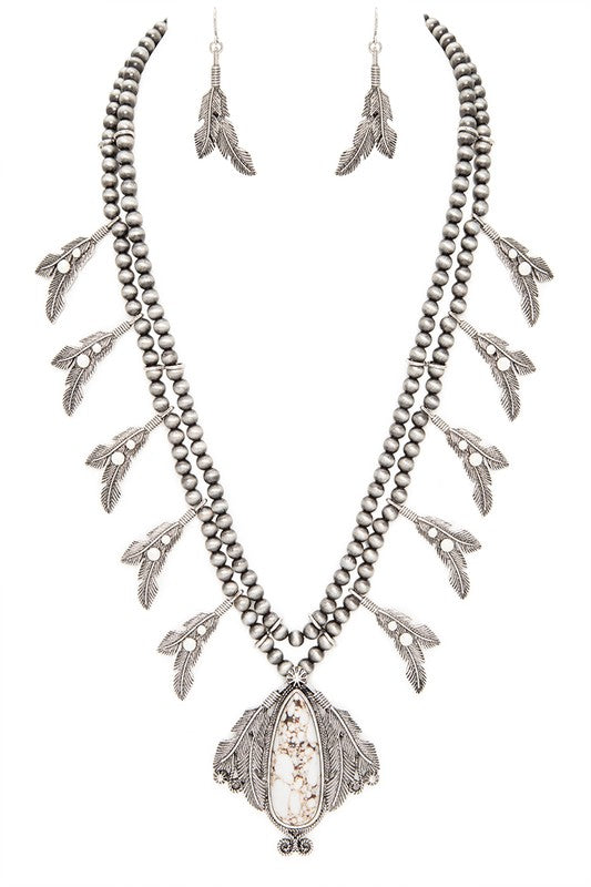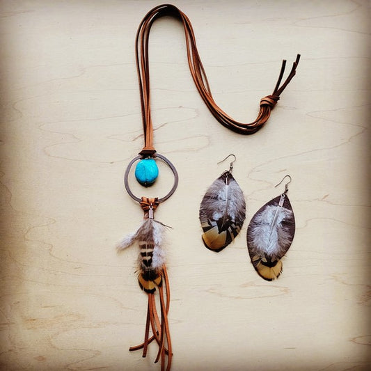 Double Lariat Turquoise Necklace w/ Copper Feather