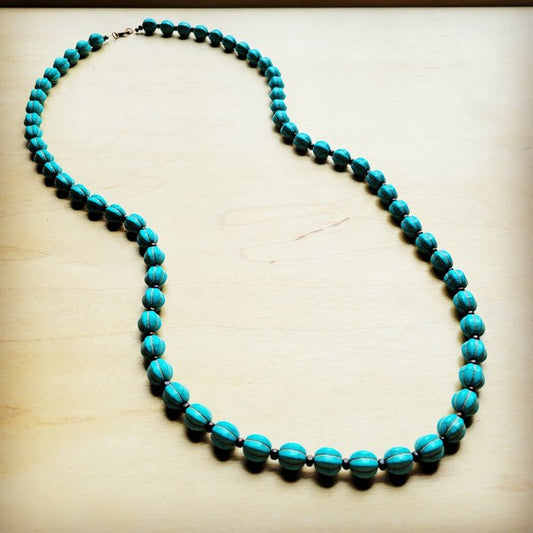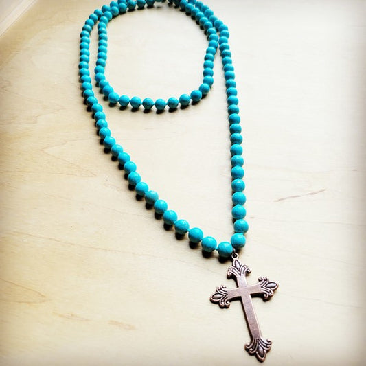 Long Turquoise Beaded Necklace w/ Copper Cross