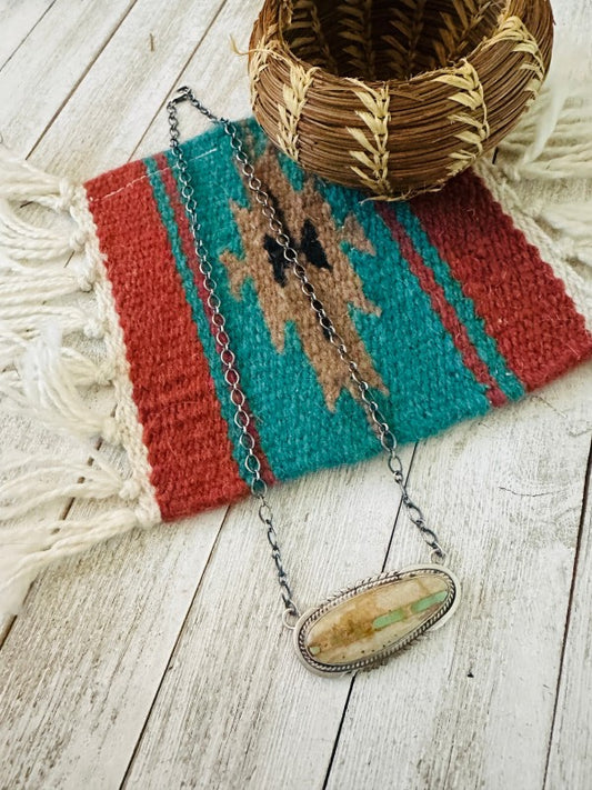 Navajo Sterling Silver & Ribbon Turquoise Necklace