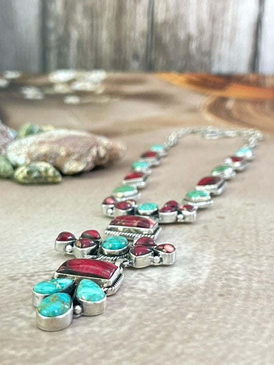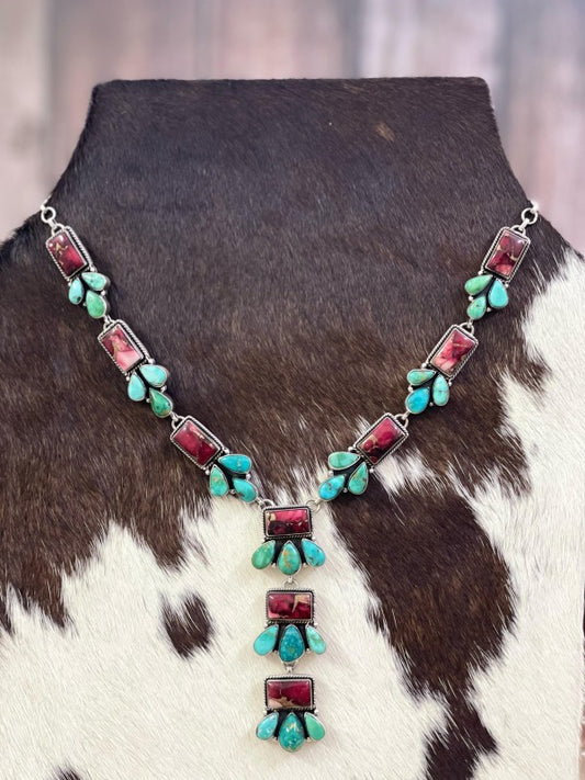 Navajo Rose Dahlia & Sterling Silver Naja Necklace