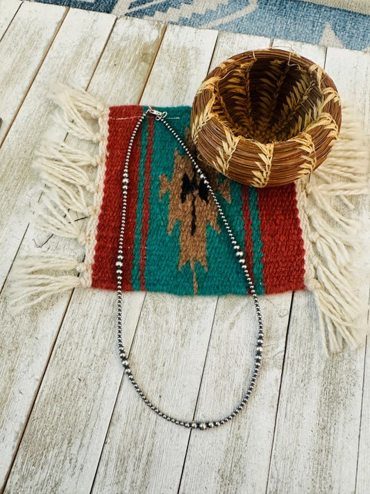 Navajo Sterling Silver Pearl Beaded 22” Necklace