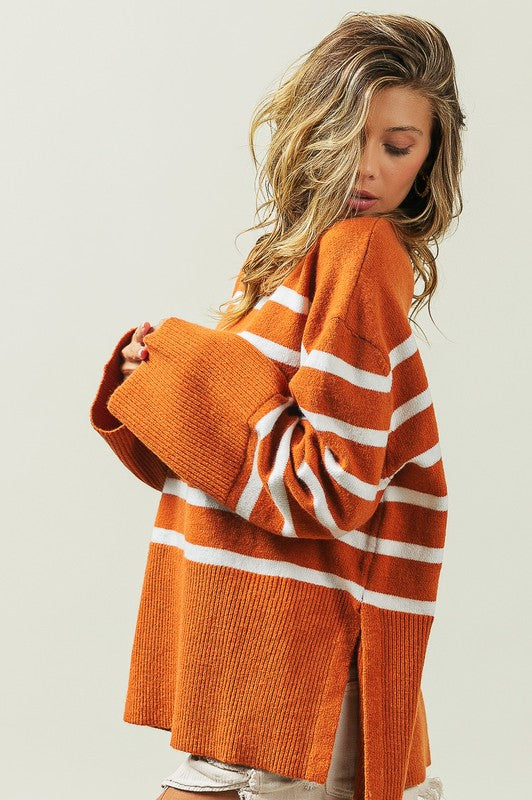 Sophia Striped Ribbed Trim Sweater