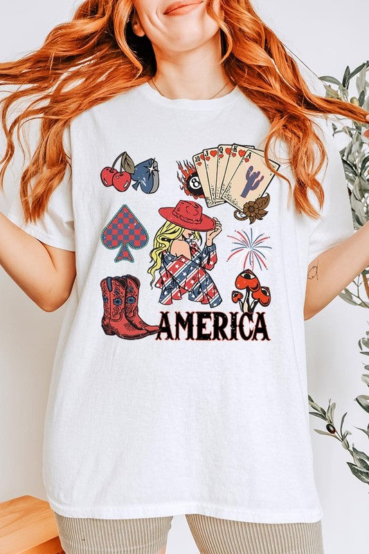 4th Of July Cowgirl Graphic Heavy Cotton Tee
